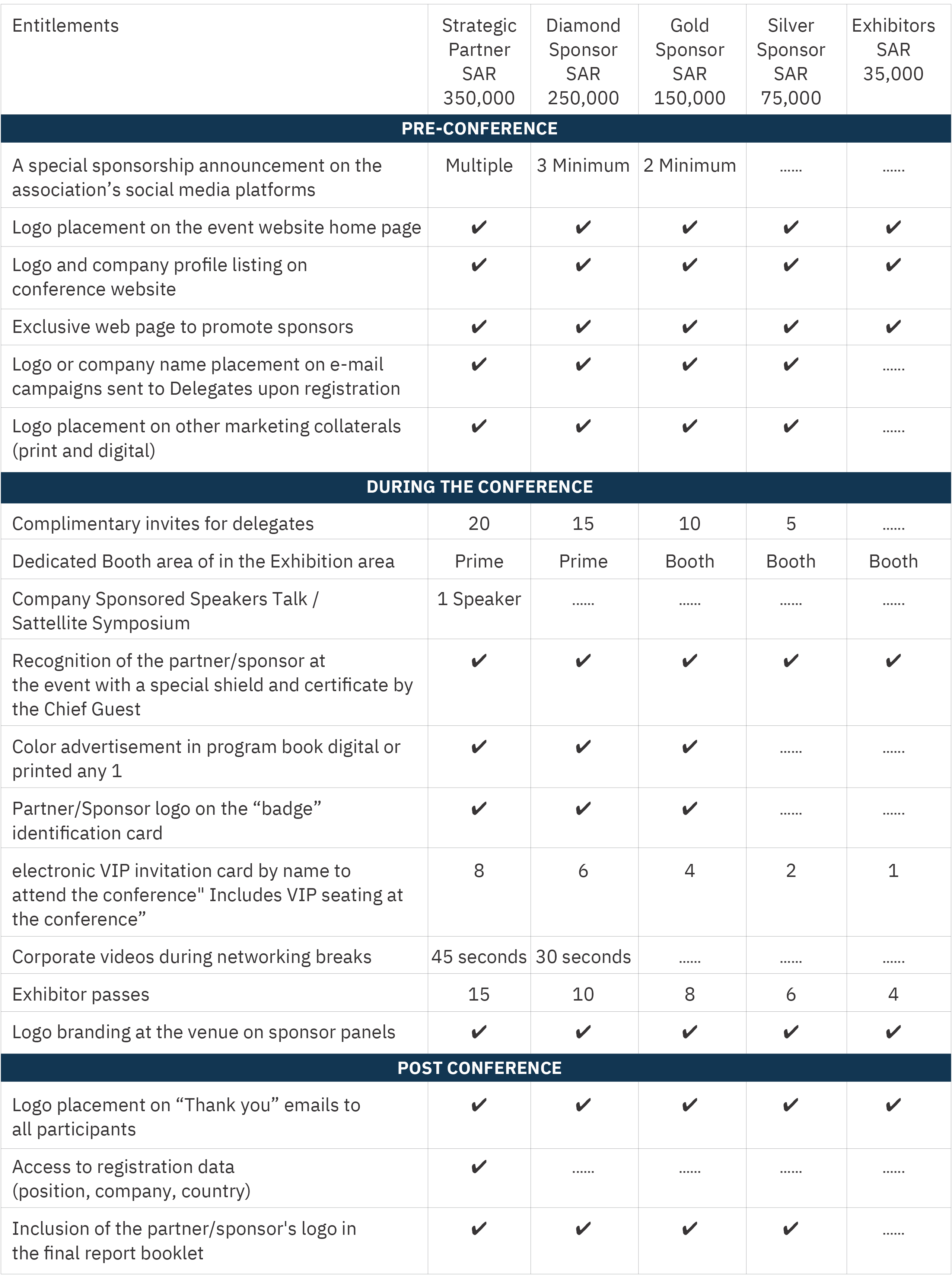 All prices quoted are exclusive of VAT, GST, sales tax or others taxes, any relevant taxes are to be applied upon invoicing For Sponsorship enquiries, please contact at eman.alshammari@wearemci.com